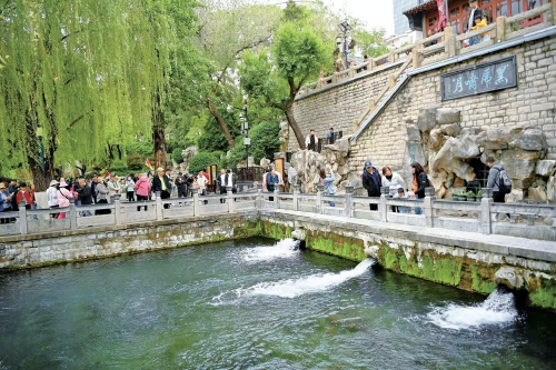 济南趵突泉公园木香花如瀑 泉畔醉游人