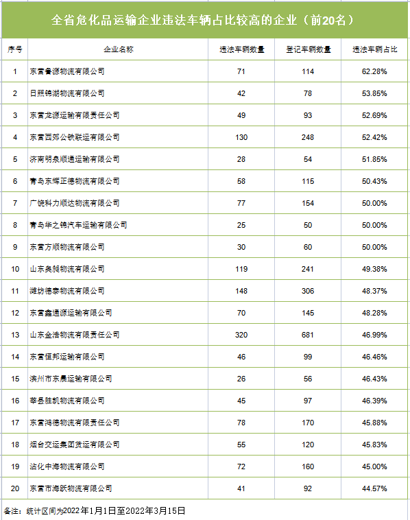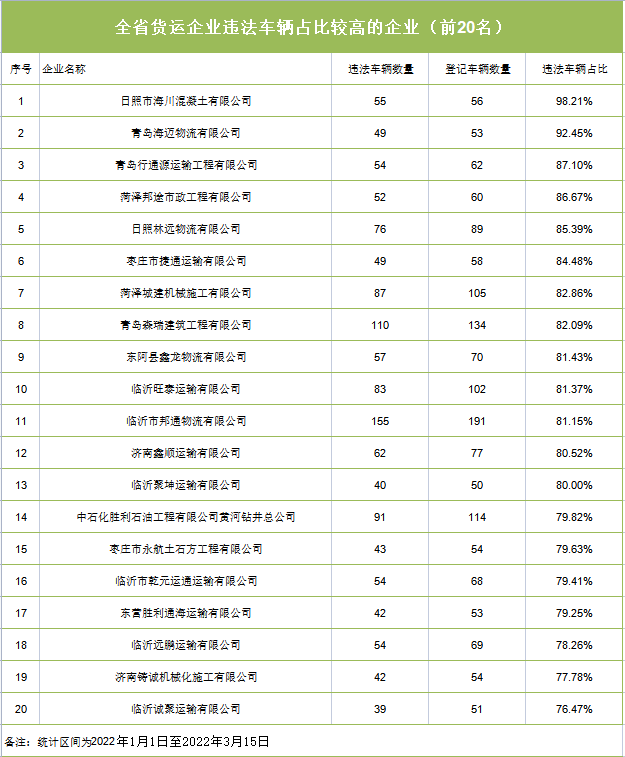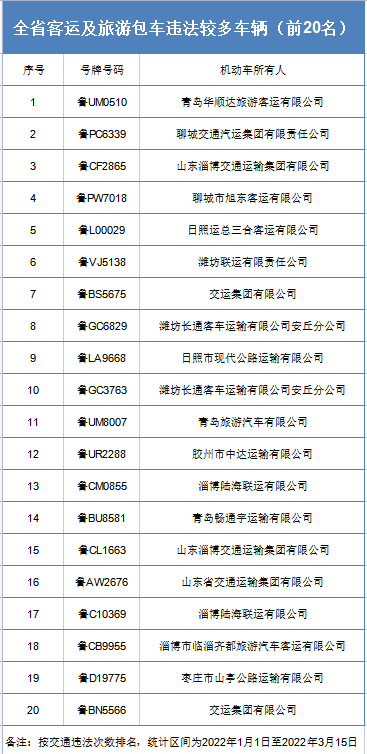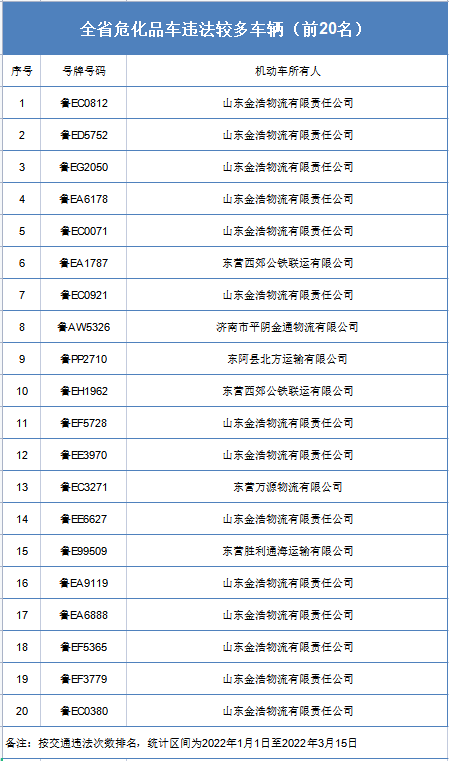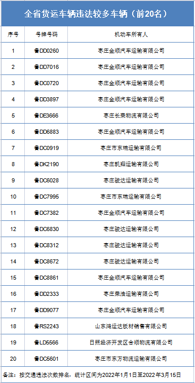 山东发布3月重点交通违法企业、车辆和驾驶人名单