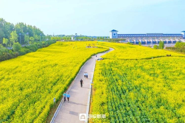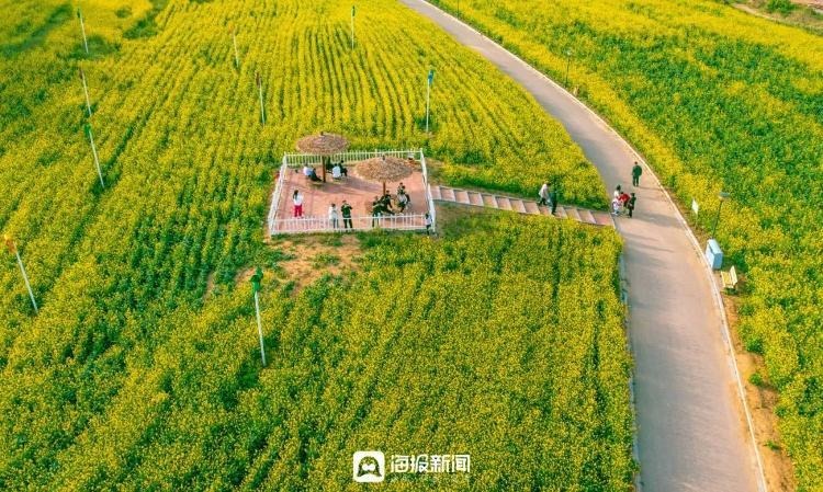 一片金黄色的海洋延伸至远方,展开了一幅充满生机和欢乐的画卷。花海在风中轻轻摇曳,像是一首欢快的乐曲吸引着众多游客前来欣赏。