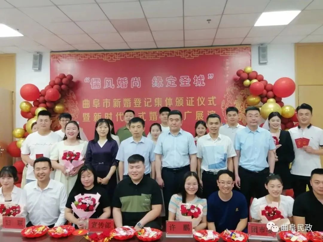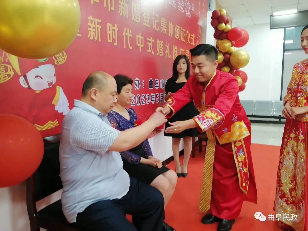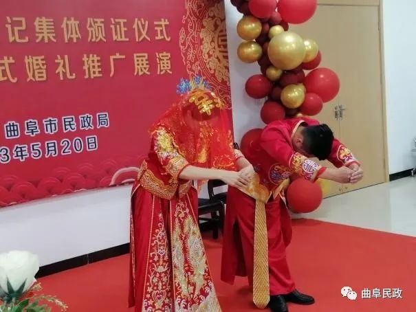 5月20日,新婚登记结婚高峰日,曲阜市民政局举办“儒风婚尚·缘定圣城”集体颁证暨中式婚礼展演,将传统集体颁证项目融入新时代中式婚礼中,向新婚登记新人宣传推广新时代中式婚礼,进一步倡树传统文化,推进婚俗改革,共创文明新风。活动由曲阜市民政局主办,曲阜市委宣传部、团市委、妇联、融媒体中心及当天新婚登记新人参加了活动。