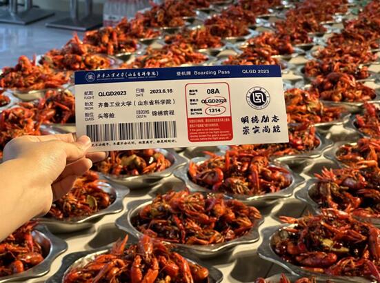 “龙虾象征着学生毕业后事业红红火火、节节高升,饺子象征着团团圆圆、顺顺利利,希望学生们常回家看看。”据该校后勤处负责人介绍,早在一个月前,他们便开始筹划这次活动。学校官微开设抽奖平台,200名幸运毕业生拿到了机票样式的入场券。