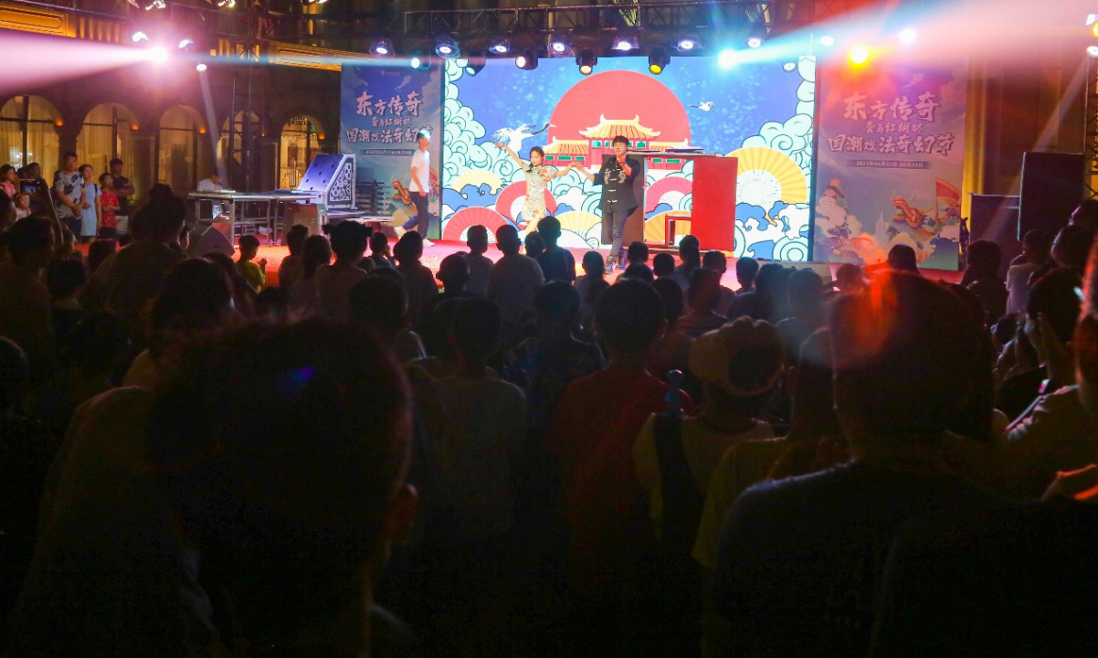6月22日-6月24日青岛红树林打造了一场以端午节国潮非遗文化“古彩戏法”构建的核心表演,融合年轻人喜爱的流行元素和表演形式,展现中国魔术的魅力,呈现传统与时尚的碰撞火花,为来自全国各地的游客和周边市民们带来了跨界与国潮的魔术、戏法、脱口秀、舞蹈表演于一体的魔法奇幻之夜。