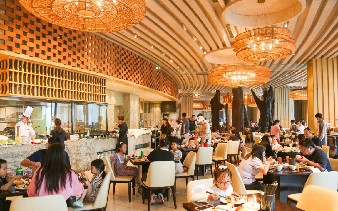 同时也作为国家级夜间文化和旅游消费集聚区的青岛红树林在端午小长假期间各业态推出端午优惠套餐,泰餐吧、百花深处老北京胡同菜、和欣阁料理集合店、莱贡普鲁法餐吧、RED Coffee、红树林汤泉、1+X红树林影城、探险王国等人气火爆,度假区内珊瑚酒店、椰林酒店、魔法酒店客房更是达到满房状态,夜晚的度假区在温柔的海风中热闹而欢快。