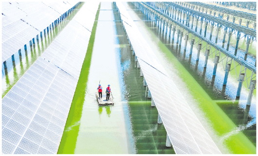 这个光伏电站的发电量全部接入国家电网,每年可为社会提供近8400多万千瓦时绿色能源,与传统火力、发电相比,可节约标煤2.66万吨,减少二氧化碳排放7.28万吨,实现渔业发展和节能减排两不误,实现了社会效益、经济效益和环境效益的共赢。