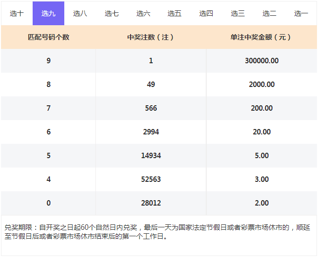 喜获1注选九中九30万元大奖