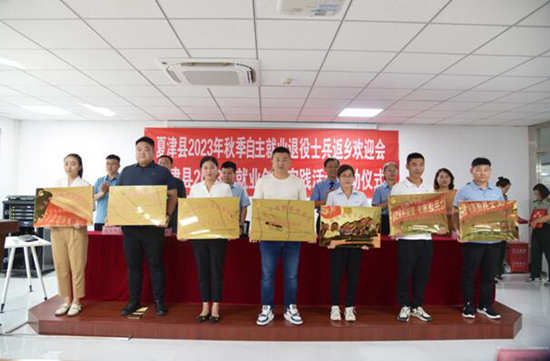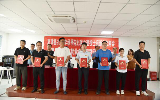 近日,山东省夏津县退役军人事务局在山东千喜鹤食品有限公司举行夏津县“退役军人就业创业指导站暨军创导师证书颁发”仪式,8个就业创业指导站获得授牌,8位军创导师获颁证书。