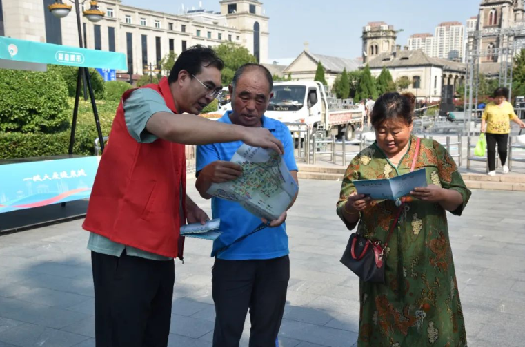 不仅如此,志愿者还设置了摊位为市民发放《“港”好遇见你》全域旅游以及黑龙峪村文旅宣传册,宣传册内容涵盖港沟街道最新、最全的文旅资料,让市民朋友们通过详细的图文,近距离、多角度了解到快速发展中的魅力港沟。