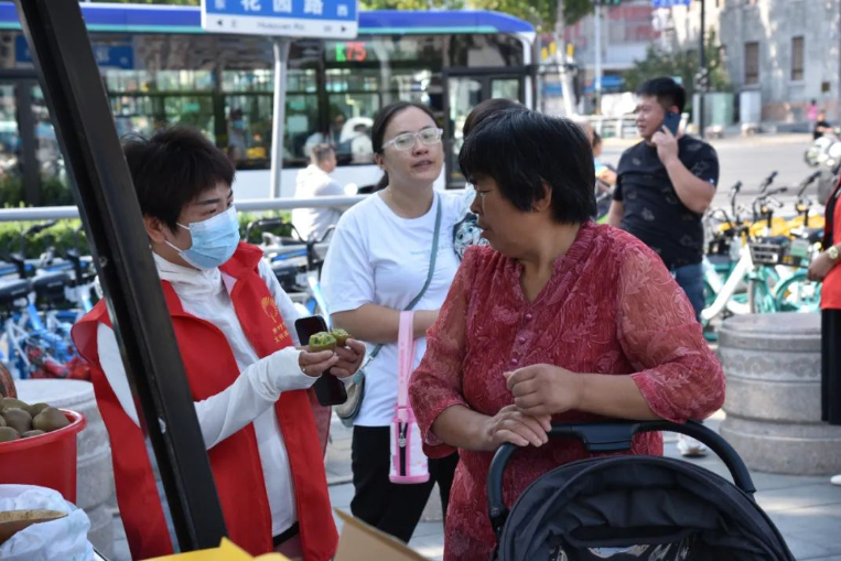 “您有时间也可以来村里现场采摘最新鲜的猕猴桃,好吃又好玩,欢迎来郭家村!”志愿者们为前来品尝选购的市民们热情介绍,互动现场热闹非凡。