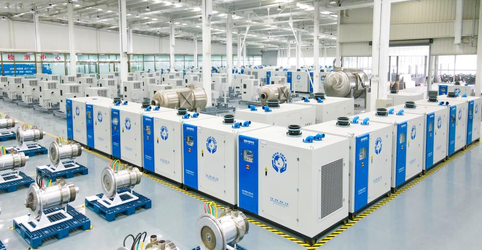 在山东天瑞重工有限公司生产车间,一台台磁悬浮动力节能装备整装待发。(受访者供图)