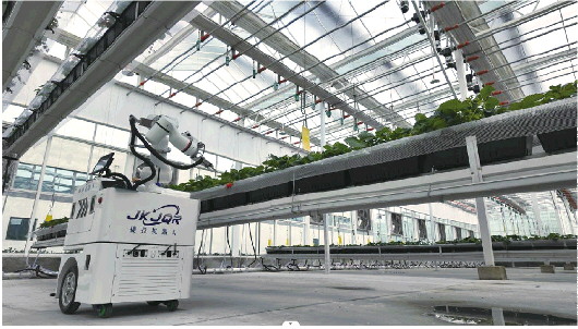 “经过前期对草莓颜色、形状、成熟度等视觉训练与软件设计后,我们实现草莓的自动化采摘。”山东捷控机器人有限公司总经理徐恩迁说,草莓采摘机器人主要由底盘和机器手臂两部分组成,底盘负责移动和计算,手臂负责草莓摘取。“机器手臂上安装了摄像头,可对周围景象实时拍照,并发送给底盘。一旦发现成熟草莓后,底盘会停止前进,命令机器手臂进行采摘。”