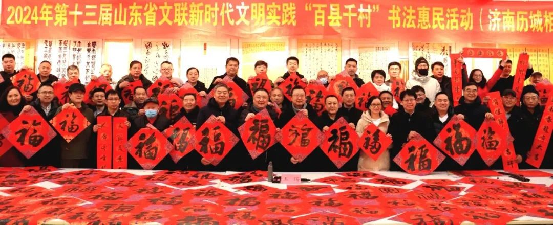 2024年第十三届山东省文联新时代文明实践“百县千村”书法惠民活动12月28日在全省16市同步启动。活动当日,共有2000余位书法家创作了3.3万余副春联,8万余个福字,4900余件书法作品,开展了69次书法大讲堂。