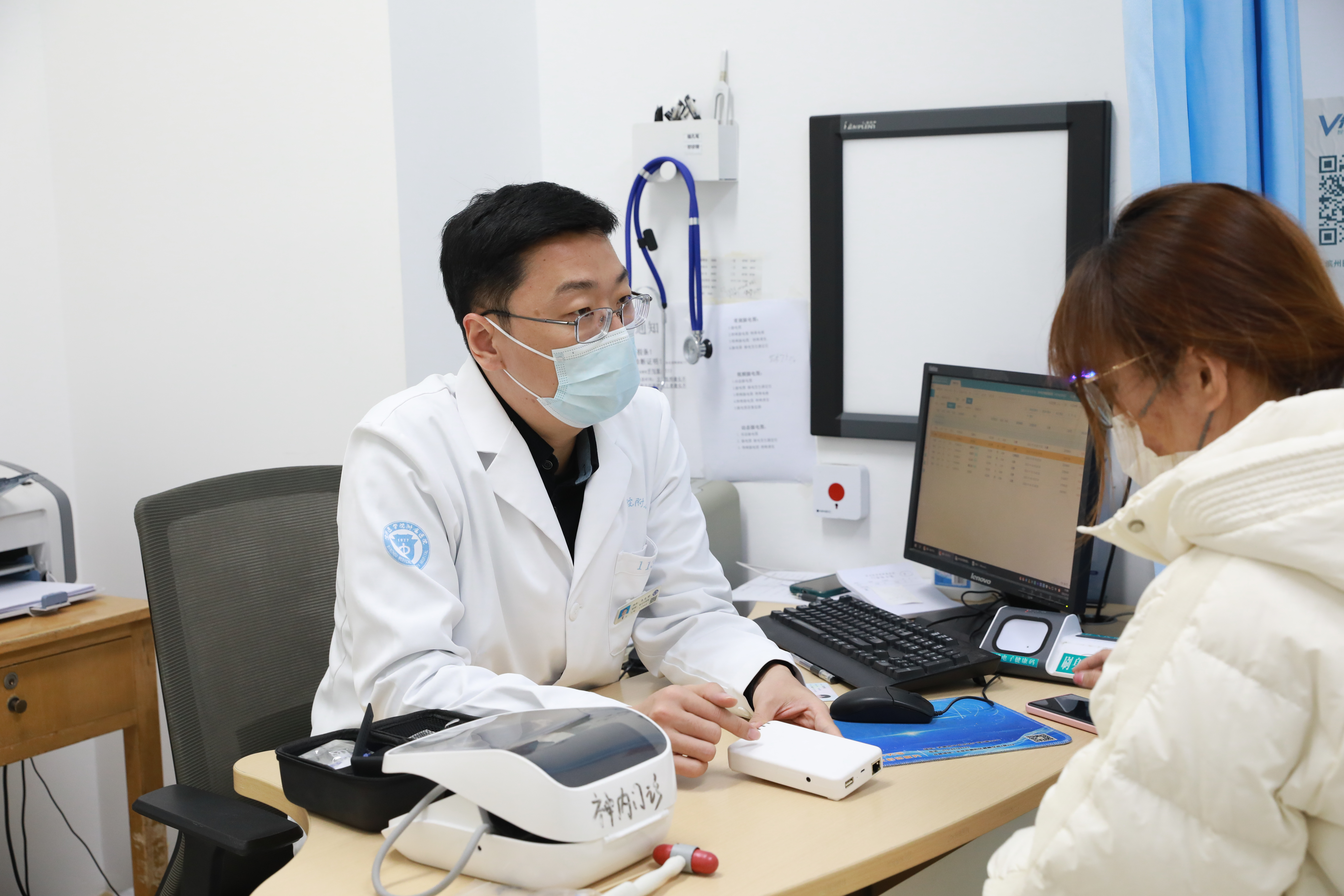 滨医附院神经内科副主任医师主治医师马文彬在跟失眠患者交流。