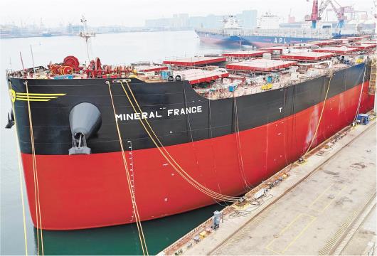 1月16日,青岛西海岸新区海西湾船舶海工产业基地一派繁忙,多艘大型船舶同时开工建造。
