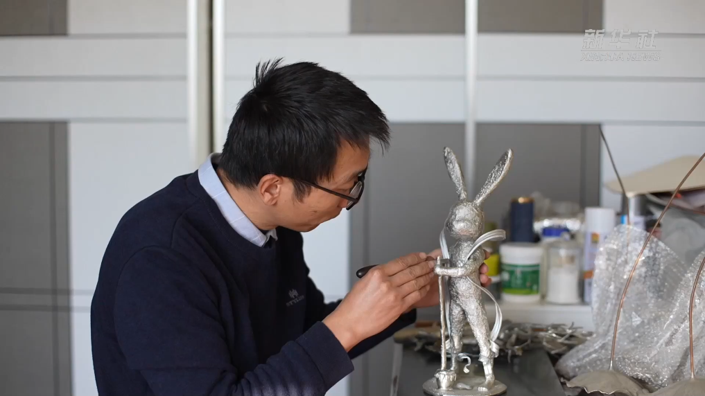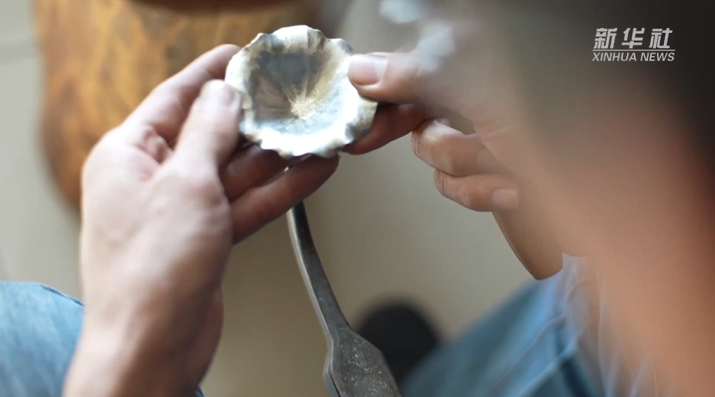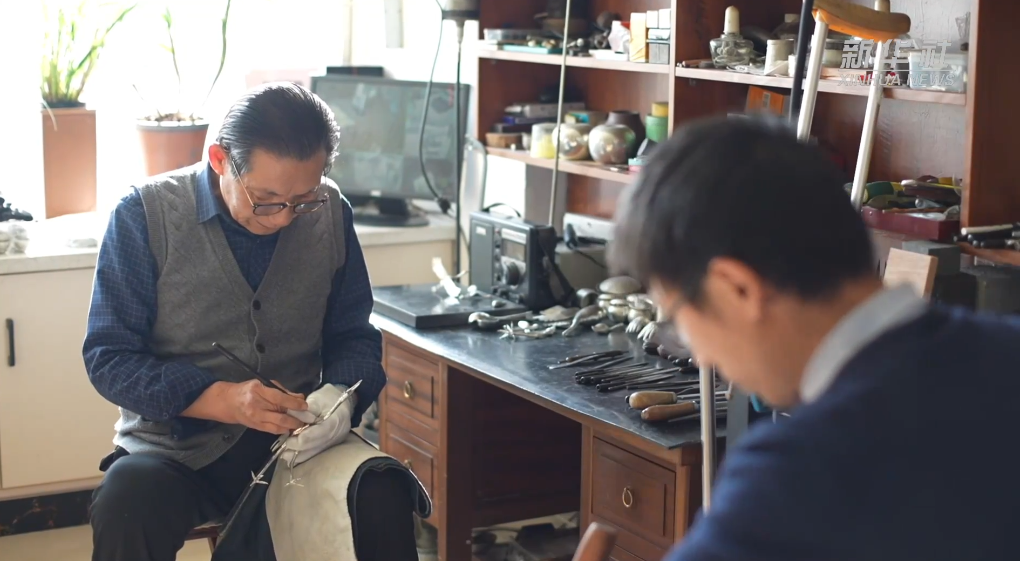 在山东济南莱芜区“凤王祥”锡雕馆内,莱芜锡雕第八代传承人王圣良和儿子王绪贤正拿着锤子、锉子,精心打磨他们的新作品。
