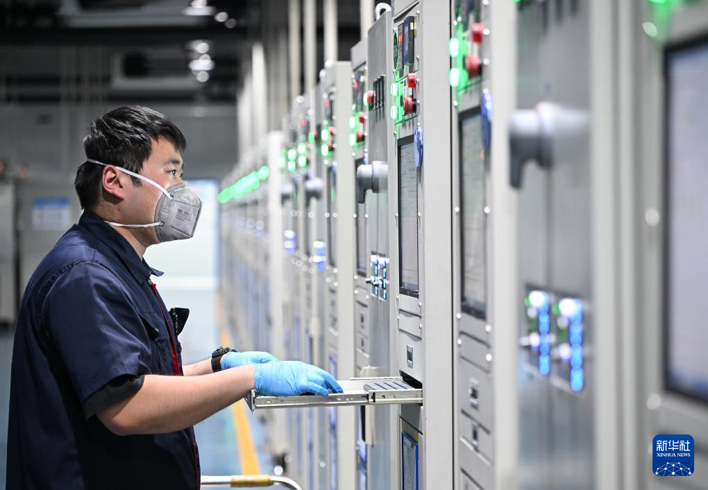 在位于济南市的山东中晶芯源半导体科技有限公司生产车间内,工作人员在对碳化硅单晶炉设备进行巡检(8月13日摄)。新华社记者 李贺 摄