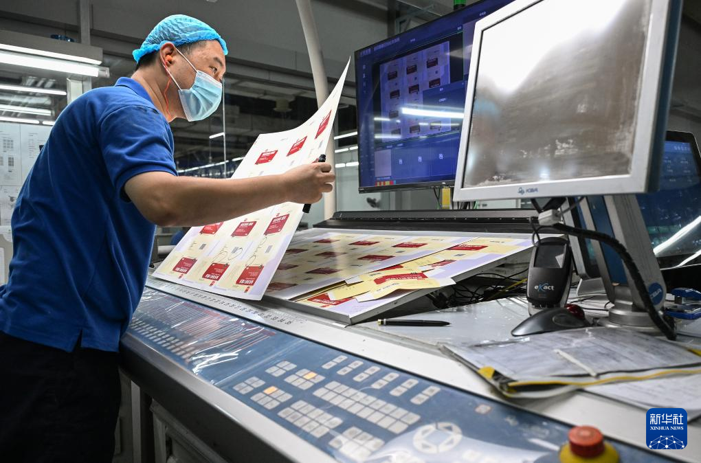在位于济南市的山东鲁信天一印务有限公司印刷生产车间内,工作人员在审核印刷版样(8月14日摄)。新华社记者 李贺 摄