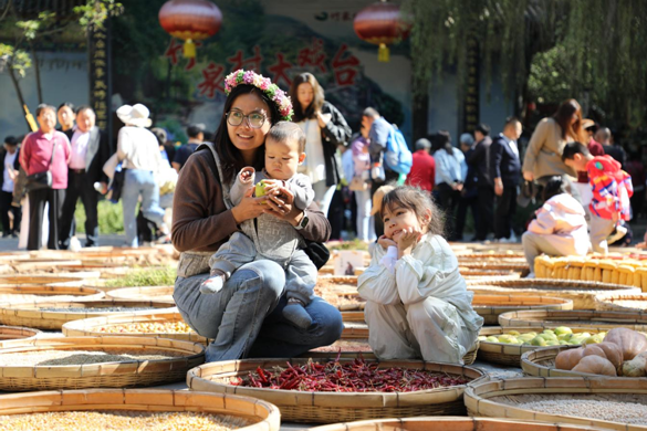 10月3日,游客参加竹泉村“晒秋”活动(李金鑫 摄)
