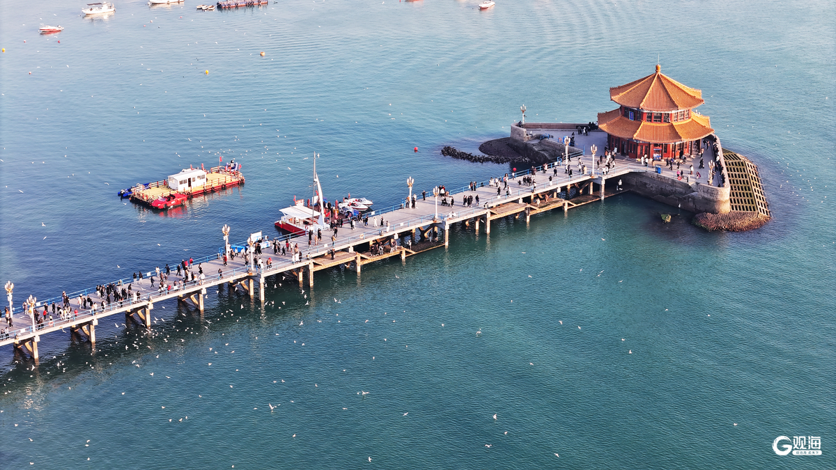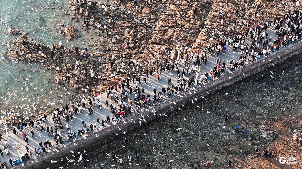 冬日的青岛栈桥海滨有一种独属于青岛的浪漫气质,金色的夕阳与飞翔的海鸥构成了青岛湾畔一幅和谐动人的画卷。数万只海鸥翔集,从空中俯瞰,宛如碧玉盘上镶嵌的一粒粒白色珍珠,吸引众多游客前来观赏喂食,人鸥和谐相处,成为冬日青岛一道独特的旅游风景。(青岛日报社/观海新闻记者 樊蓉)