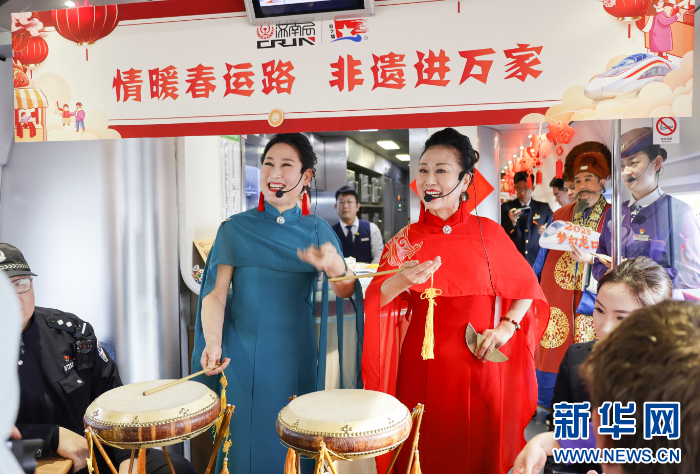 山东省非遗项目东路大鼓搬上列车,表演传统剧目《丁秀英盼夫》。新华网发