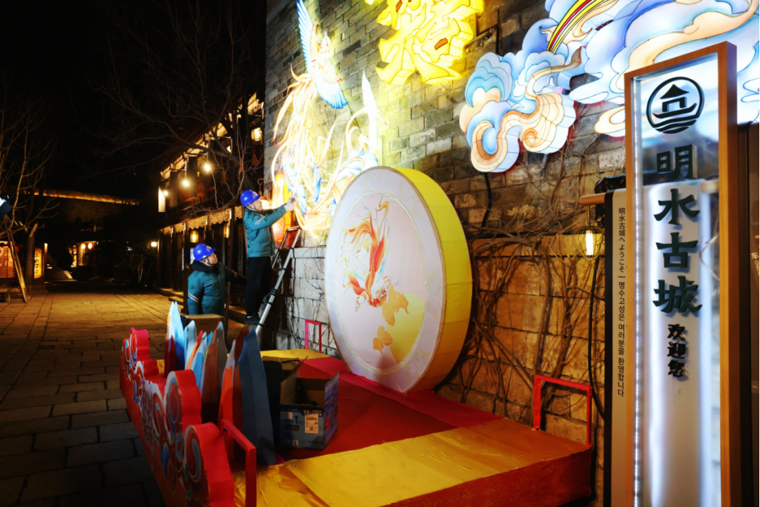 春节假期滨州惠民“乐享春秋·孙武不夜城”灯火辉煌。