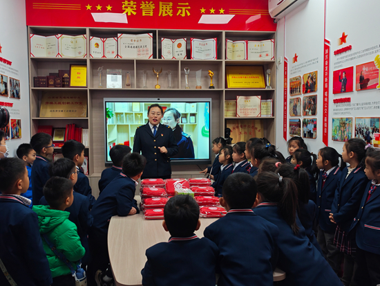在B52路雷锋主题专线站房,学生们见到了“勇斗歹徒保护乘客”的英雄驾驶员董丹。这位曾智斗持刀歹徒、保护全车乘客的“平民英雄”,向孩子们展示了公交驾驶员在每天出车前的一系列准备工作,并分享了自己十几年安全行车的秘诀:“方向盘握住的不仅是路线,更是责任。”跟随董丹走进以她名字命名的工作室,满墙的荣誉证书和一张张生动的照片无声诉说着平凡岗位的坚守,孩子们感叹道:“董丹阿姨可真了不起!”