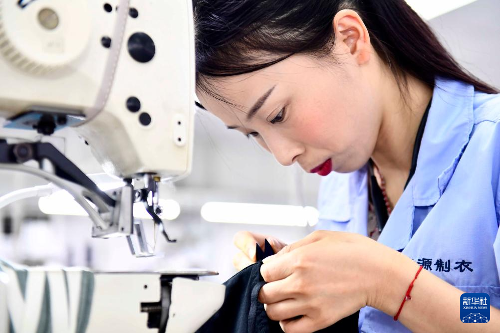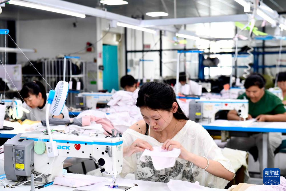 5月29日,工作人员在郓城县郭屯镇一家企业内加工衣服。新华社记者 郭绪雷 摄