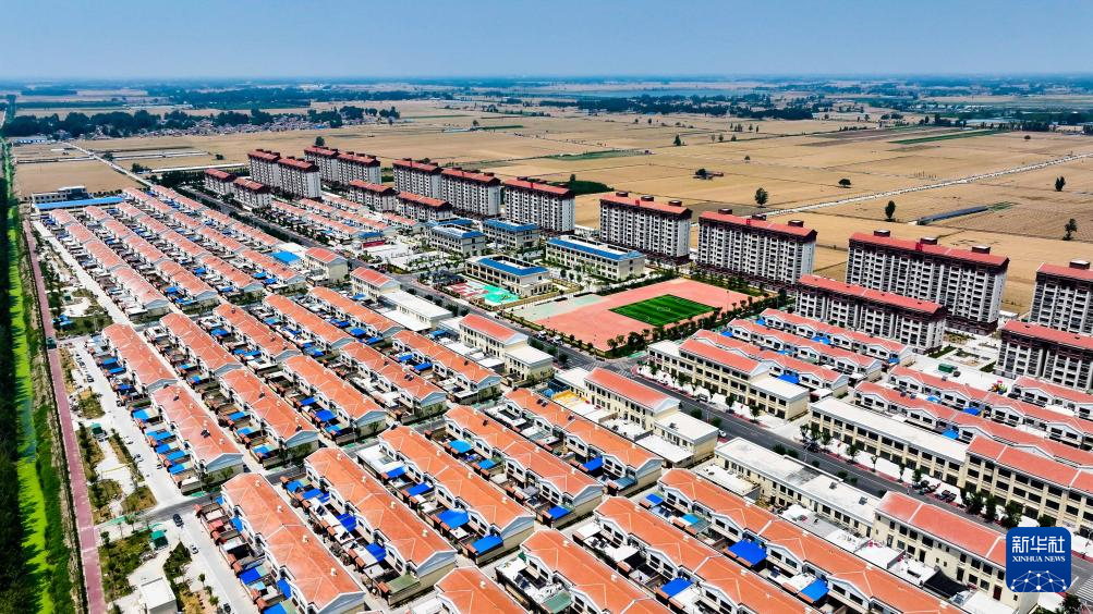 这是5月29日拍摄的郓城县郭屯镇采煤塌陷区村庄搬迁后集中安置的农村社区(无人机照片)。新华社记者 郭绪雷 摄