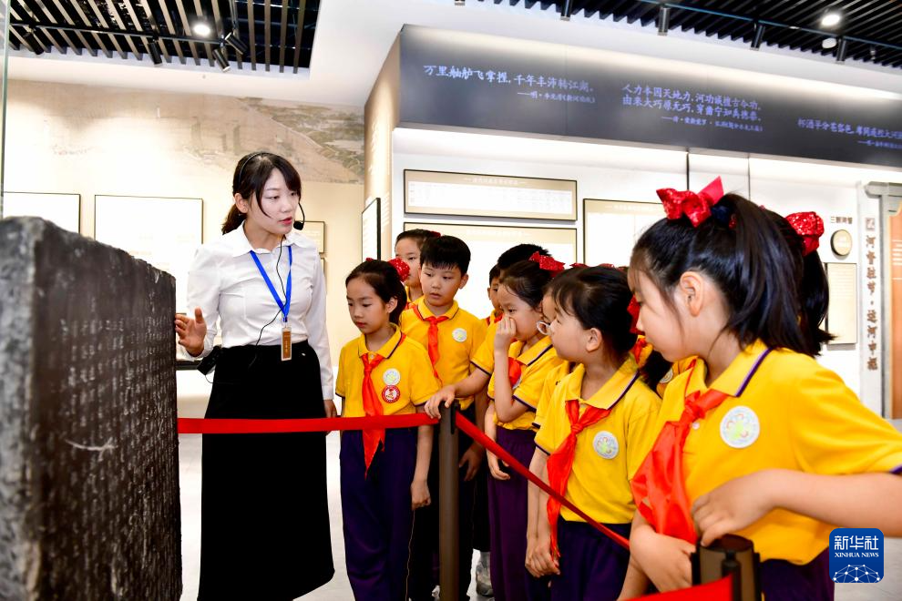 6月6日,在位于山东省济宁市任城区的河道总督署遗址公园展馆,讲解员在为济宁市霍家街小学学生讲解。新华社记者 郭绪雷 摄