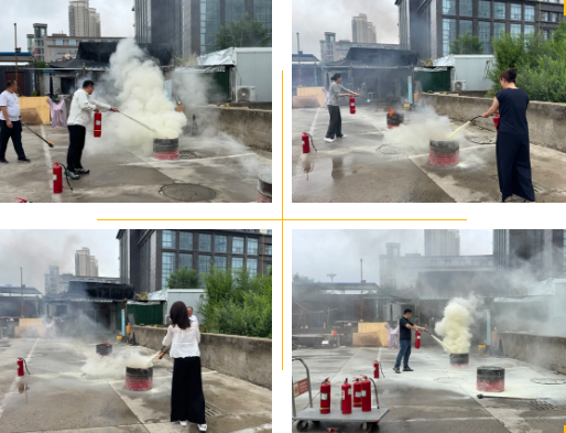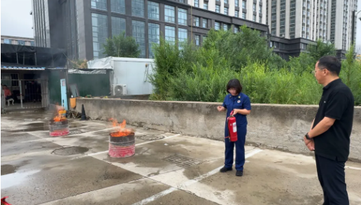 理论学习结束后,活动进入实操演练阶段。在室外空旷场地,两个大铁桶被放置在合适位置,倒入适量柴油并添加木料,营造出模拟火灾现场。随后,专业消防人员详细讲解了干粉灭火器的使用方法,包括如何检查灭火器是否正常可用、正确的握持姿势、按压方式以及喷射角度等关键要点。教官通过分解动作演示,让参训人员直观地掌握每一个操作步骤,并着重强调注意事项,例如避免逆风使用灭火器、与火源保持适当距离等。