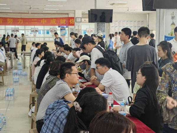 学校为来访考生和家长准备了解暑的红茶、绿豆汤、酸梅汤、西瓜和小点心等,在炎热的天气下送去更多清凉。