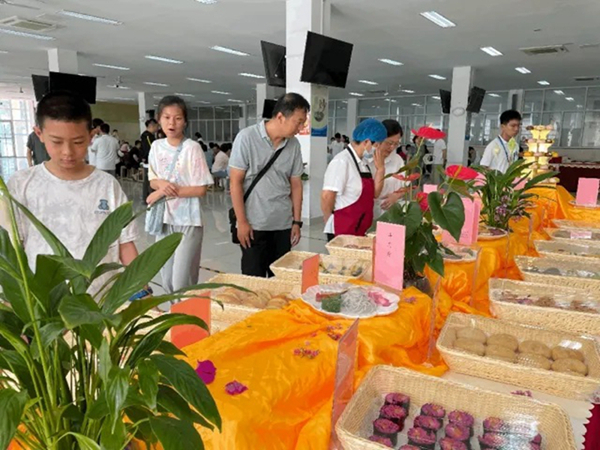 作为一所寄宿制学校,学生一天三餐在校吃,吃得好不好成为很多家长关心的元素。在餐厅一隅,济南二中特别设置了“舌尖上的二中”展区,将餐厅特色餐食进行展示,不少家长流连拍照,并向工作人员咨询餐食种类、营养等情况。丰富多样的菜品和点心,让人垂涎欲滴。