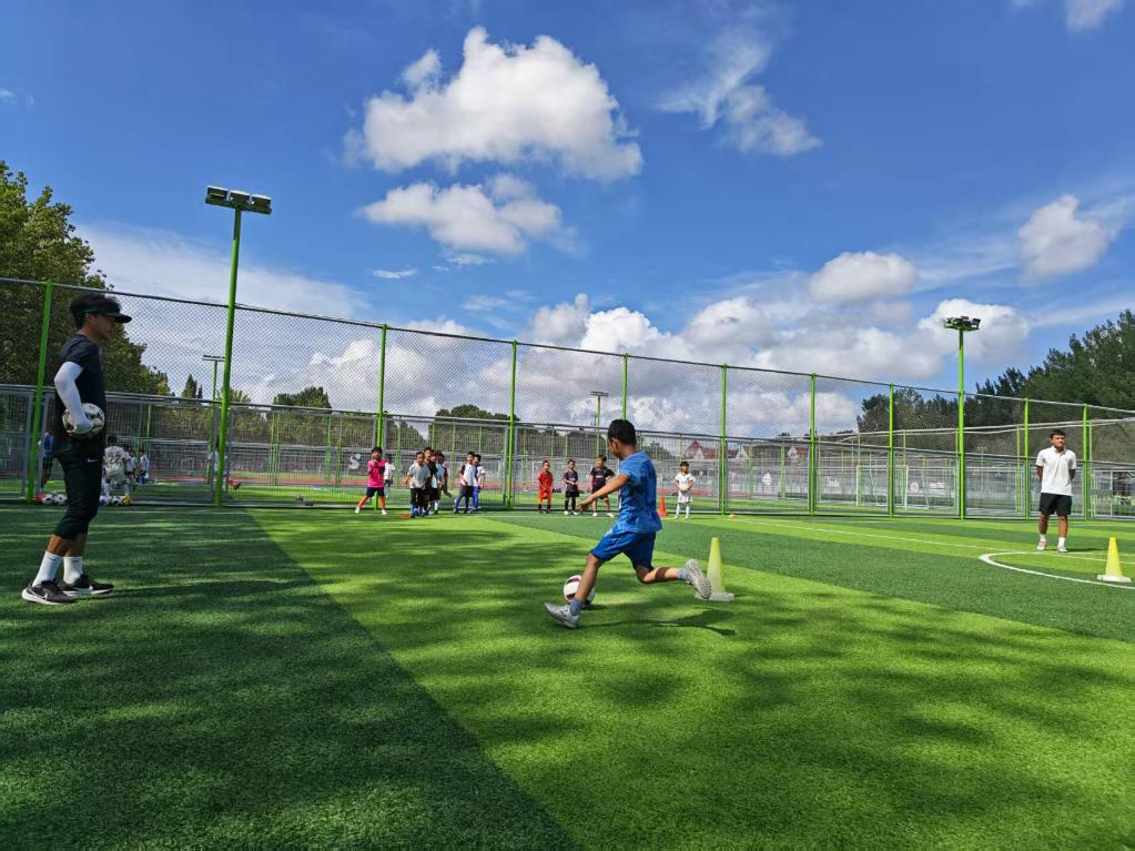 新华社济南7月28日电(记者吴书光、张武岳、岳东兴)夏日午后,山东省青岛市城阳区的西流亭智慧运动公园里,参加“满天星”训练营的孩子们奔跑在绿茵场上。天气炎热,汗水打湿了他们的头发和球衣,但他们脸上的笑容和眼神中的坚定认真,诉说着对足球运动的热爱。