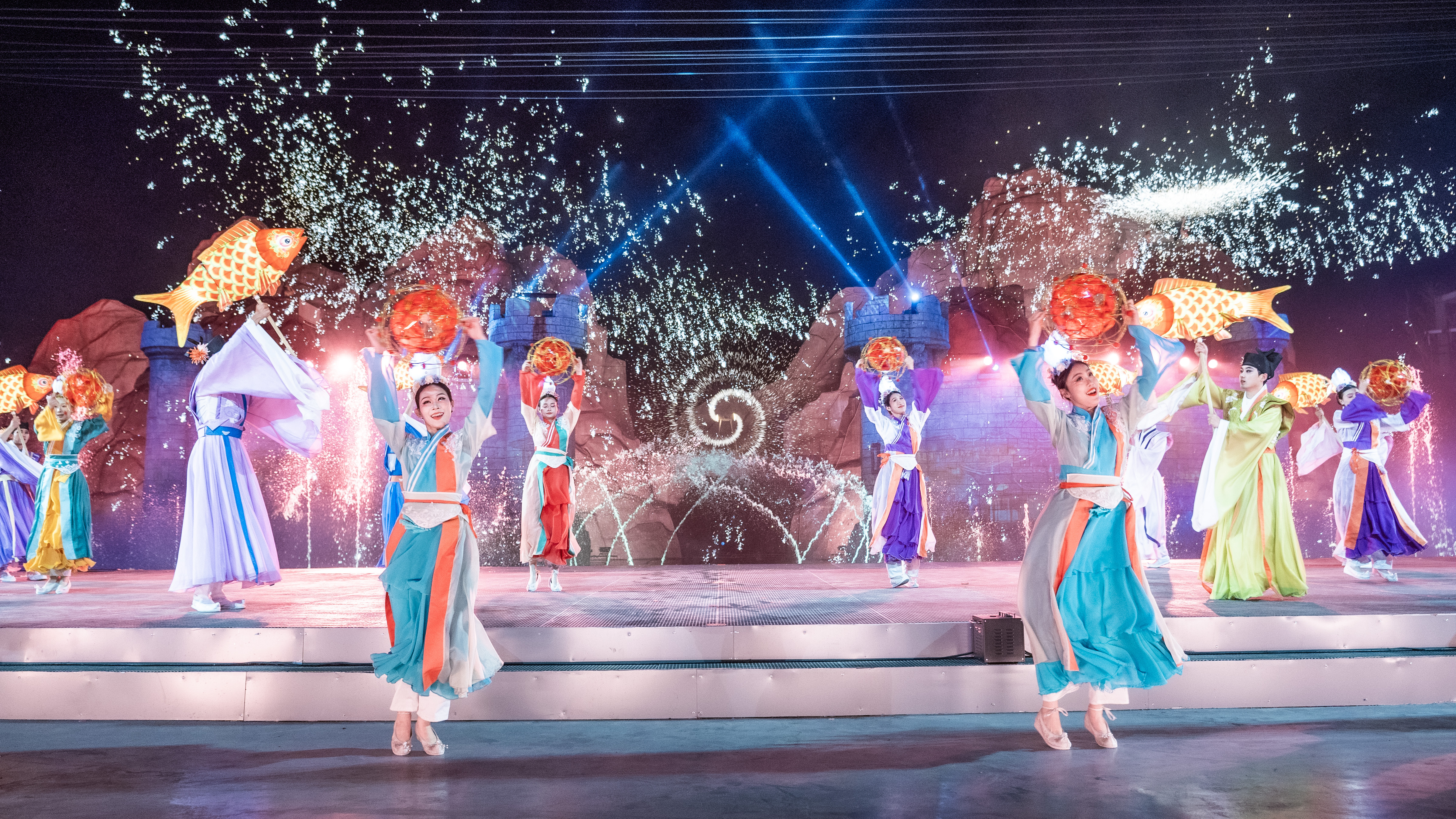 “宋朝文化鼎盛,我们以铁花、舞龙等情节通过对上元节的‘烟火气’呈现让游客看到热闹的宋代景象,与此同时切入李清照和赵明诚的相遇。通过大场面、小细节的呈现,架起演员与观众的情感桥梁。”济南融创文旅城相关负责人表示。