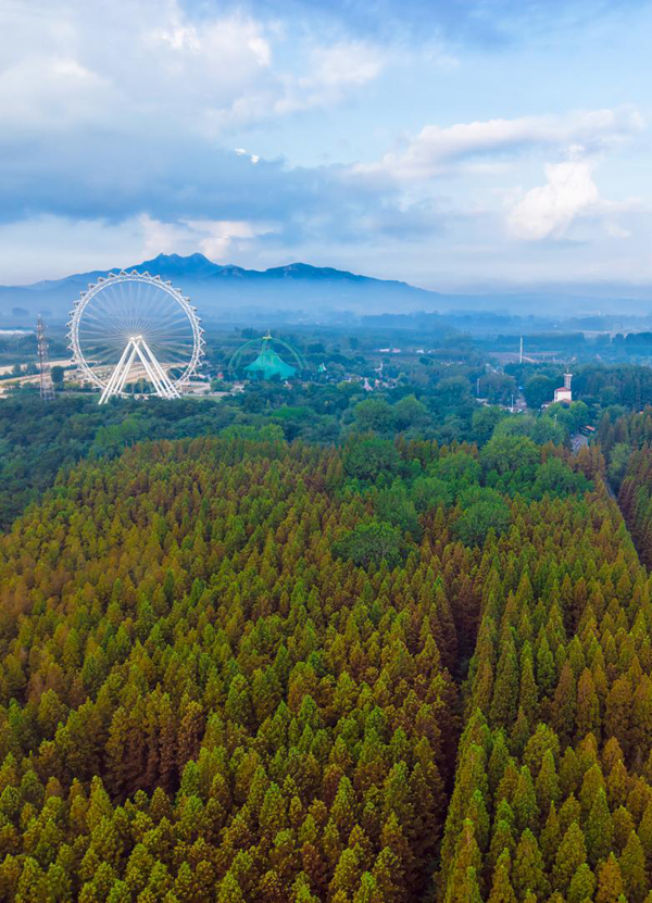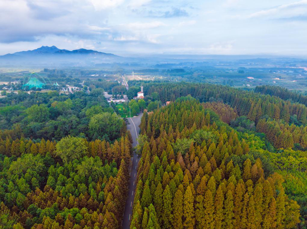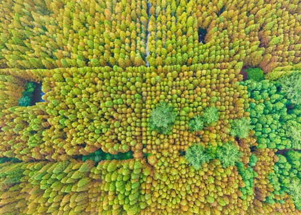秋日里,于高空俯瞰这片千余亩的水杉林,宛如大地编织的彩色绒毯。宋年升 摄