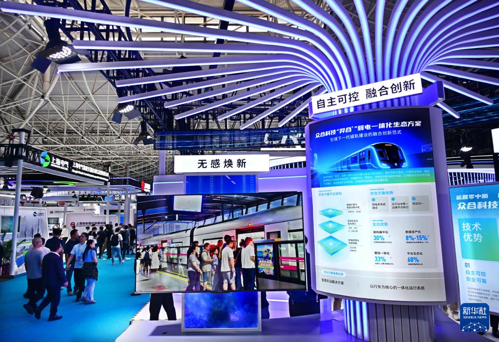 9月18日,2025中国国际城市轨道交通展览会在青岛西海岸新区举行。本届展会以“创新破局 迈向城轨发展新阶段”为主题,设置车辆系统及装备供应链、信号通信系统及IT技术与人工智能等展区。新华社记者 李紫恒 摄