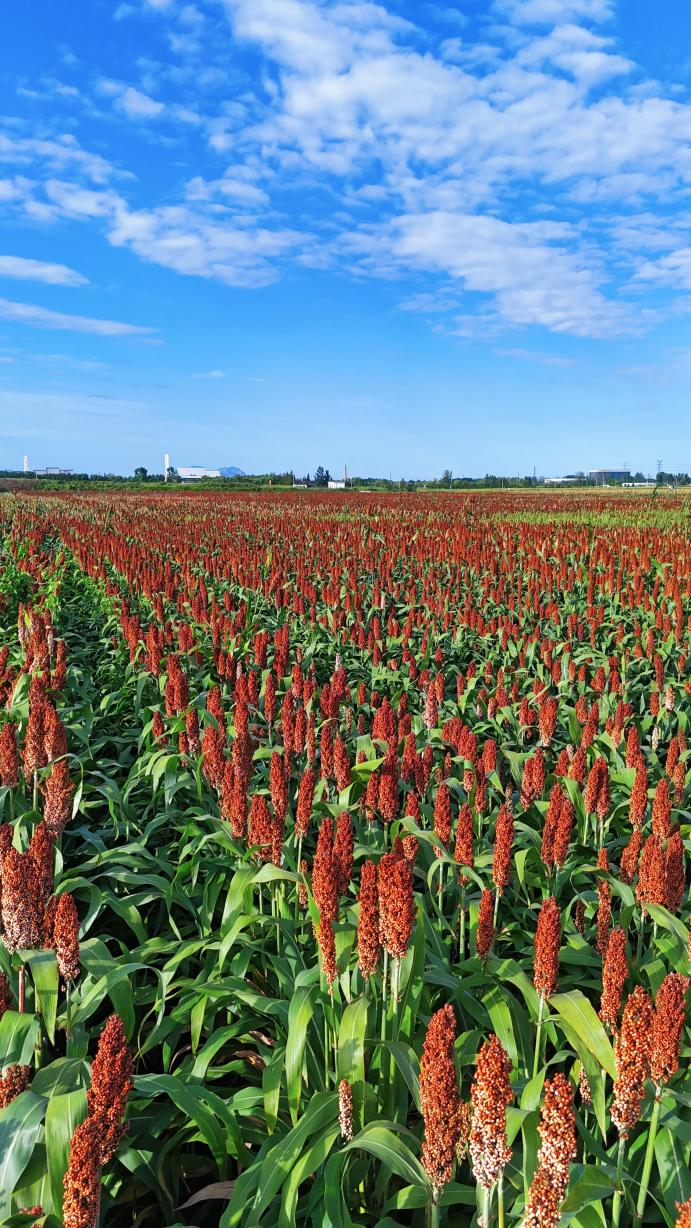 秋至,日照田野乡间尽是丰收喜悦。东港区涛雒镇廒头片区,700 余亩高粱,青秆托着绛红穗尖,未熟穗子紧绷。风过,红影在田埂晃动,绘就醉人的丰收之景。