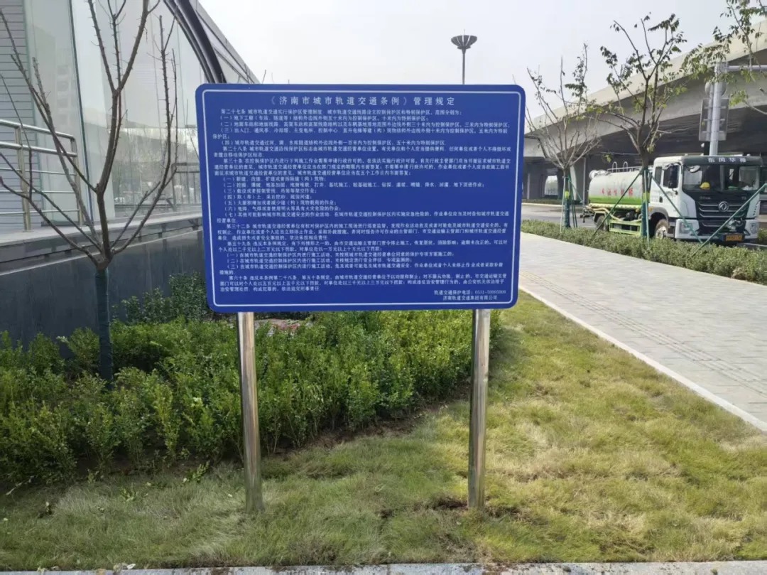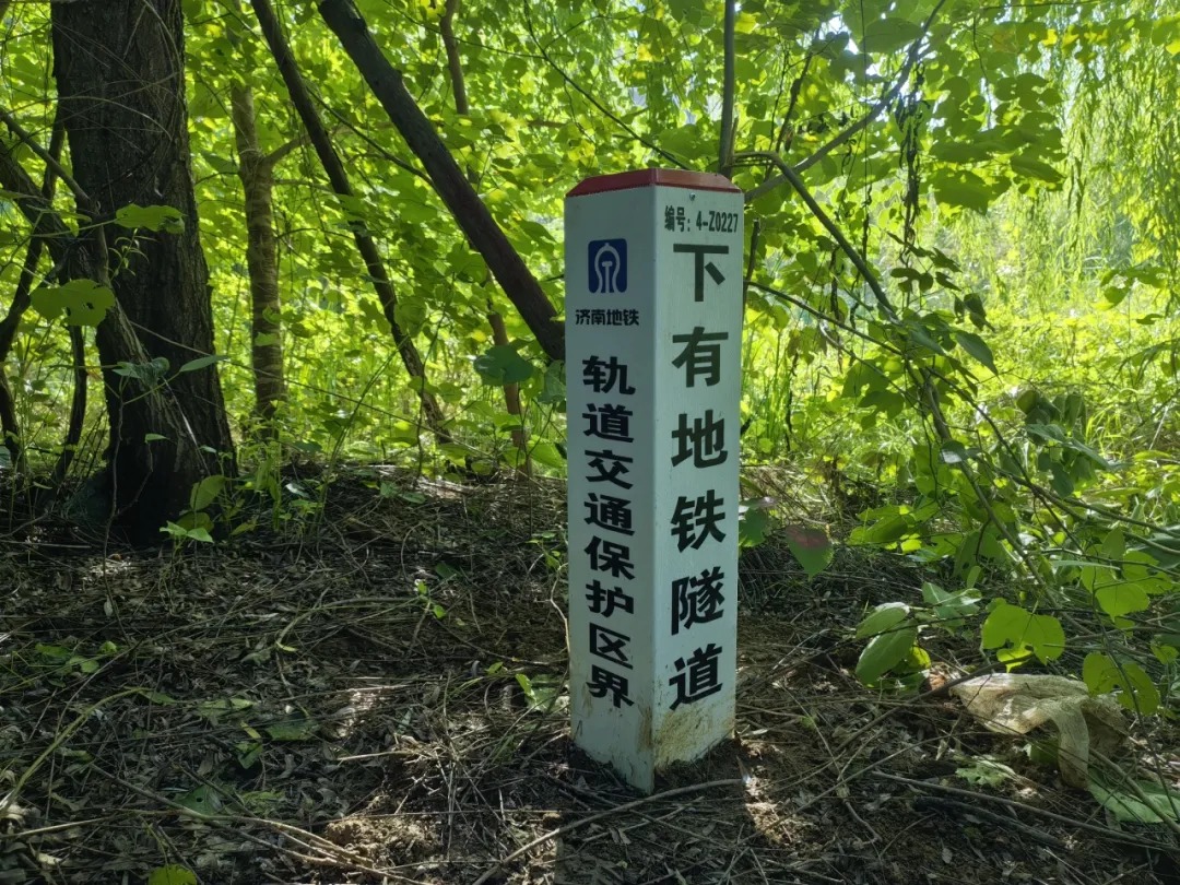 济南轨道交通集团在地铁沿线的保护区边界设置了保护区警示标识牌和标识桩,在地铁车站周边设有保护区警示公告牌。这些标识告诉大家,此范围内是地铁保护区,内有地铁结构设施,施工一定要注意!