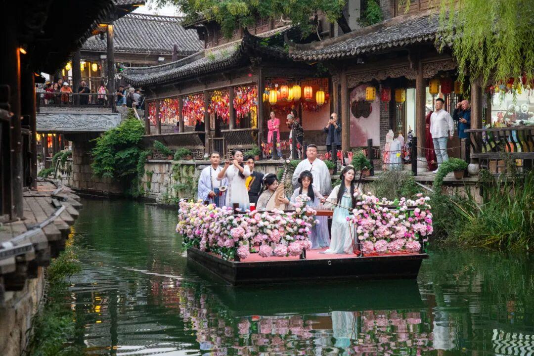 据介绍,台儿庄古城已对常态演艺体系进行全面升级,打造“日夜连台·古今对话”的全新演艺矩阵。经典剧目通过增强舞台科技与沉浸式声光,再现运河商贸繁华与历史风云;新增多处环境戏剧演出点,演员与游客即时互动,打破观演界限。从晨间的开城迎宾至夜间的水上实景大秀,全天候安排精心打磨的演艺节目,以更丰富的艺术表现力和更强的观赏性,让游客在移步换景中感受古城历久弥新的文化魅力。