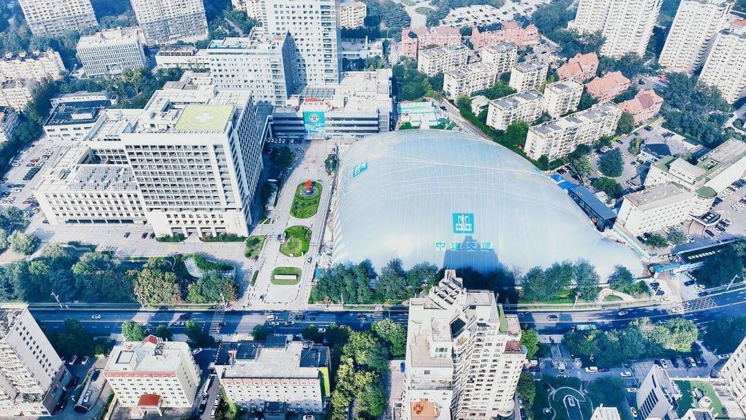 近日,在青岛市市立医院东院区三期改扩建项目中,青岛市首个全封闭式基坑气膜系统启用。远远看去,像一座“巨型穹顶”,将整个工地“罩”了起来,不仅能防火防雨防尘降噪,还能“硬刚”12级强风。