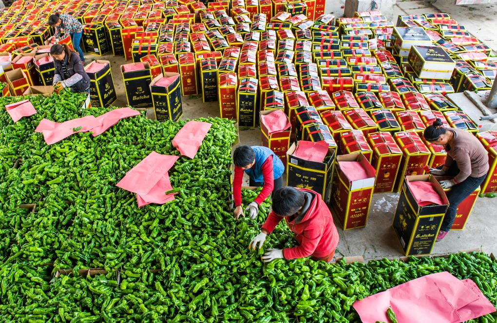 山东省莘县的农户正在将青椒装箱。(受访单位供图)