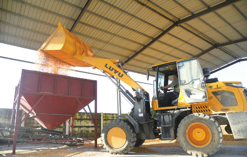在宁津县时集镇为农服务中心院内,工作人员将玉米送进烘干塔。张小弟摄