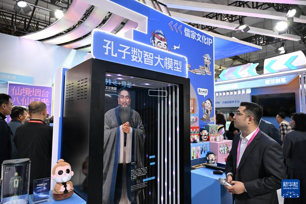 10月16日,与会人员在第十届中国国际版权博览会上观看“孔子数智大模型”的演示。