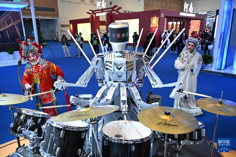10月16日,演奏机器人在第十届中国国际版权博览会上表演。
