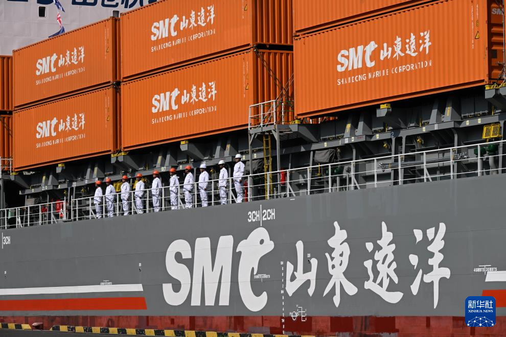 10月16日,“青岛—济州”集装箱航线启航仪式在青岛邮轮母港举行。新华社记者 李紫恒 摄