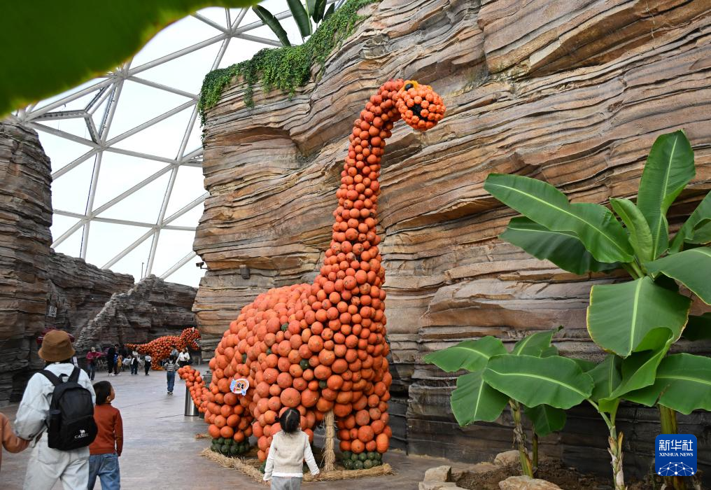 这是景区展示的一处“南瓜恐龙”造型(10月18日摄)。新华社记者 李紫恒 摄