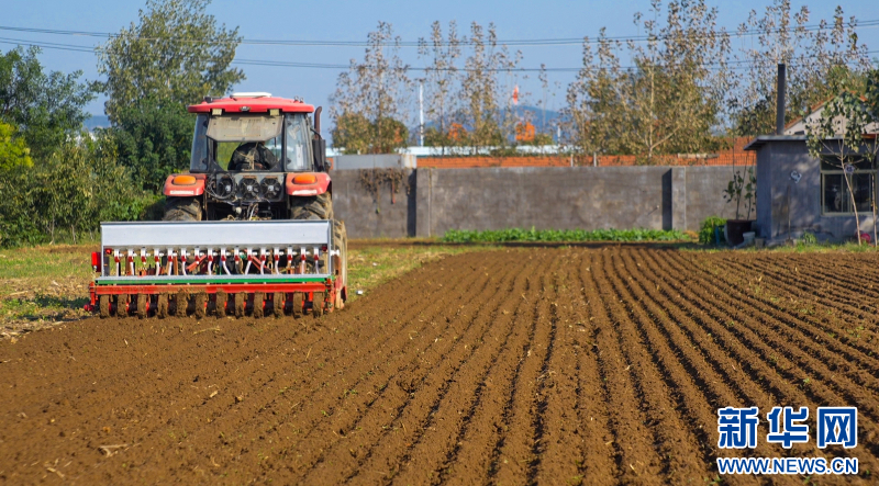 霜降时节,日照市岚山区碑廓镇抢抓农时,全镇约2.4万亩冬小麦陆续播种。村民们在田间忙着撒肥,播种机来回穿梭,翻地、播种同时进行。