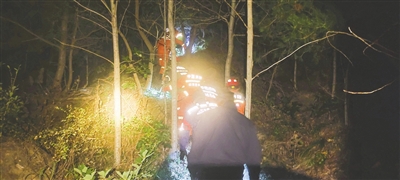 转折点出现在23日2时50分,指挥中心通过不断联系,终于锁定被困者的信号,通过定位发现,4人位于西线半山腰。为抢抓救援时间,救援队员决定从“麻衣庵”向“神龟望月”景点挺进,然而前路荆棘密布,行进异常艰难,救援队员需用砍刀开路才能前行。“夜里搜救本就危险,加上地形复杂,每一步都得小心。”一名队员事后感叹。
