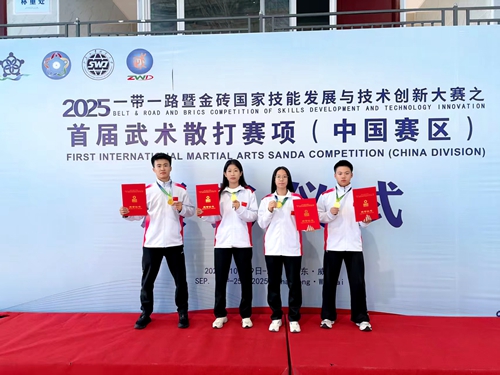 10月19日至25日,2025年“一带一路”暨金砖国家技能发展与技术创新大赛之首届武术散打赛项(中国赛区)总决赛在山东外事职业大学举办。青岛职业技术学院代表队斩获四金一银,其中,散打项目获三枚金牌,武术套路项目获一金一银。