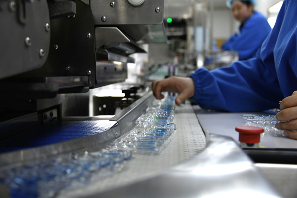 10月28日,在山东辉成药业有限公司,工作人员在对产品进行抽检。