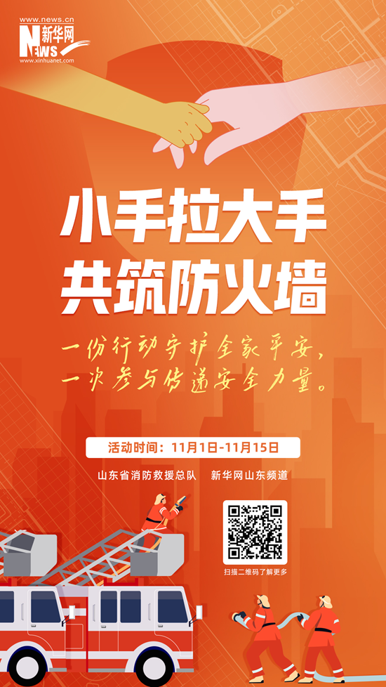 山东省消防救援总队发起“小手拉大手・共筑防火墙”家庭消防安全行动,诚邀孩子和家长携手学习消防知识、掌握避险技能,让安全的种子在亲子互动中生根发芽,为孩子的健康成长撑起坚实的保护伞。